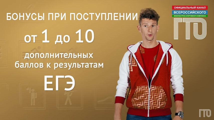Московский инновационный университет — 10 баллов за любой значок ГТО; 1 Национальный государственный университет физической культуры, спорта и здоровья имени П. Ф. Лесгафта — 10 баллов за золотой, 5 за серебряный и 3 за бронзовый значок ГТО; 1 Санкт-Петербургский государственный лесотехнический университет им. С. М. Кирова (СПбГЛТУ) — 10 баллов за золотой, 5 за серебряный и 3 за бронзовый значок ГТО. 1 ТУТ ВУЗЫ И БАЛЛЫ https://tabiturient.ru/article/7/