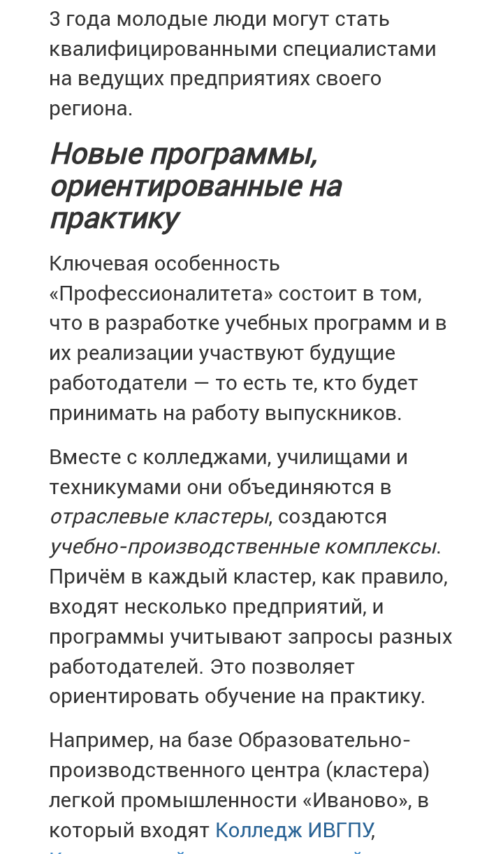 >>1054027 >Ну так дают знания по конкретной рабочей специальности Спорно, очень спорно. У меня знакомый с пту говорил, что ничему не учат, а просто лапы преподам греют.
