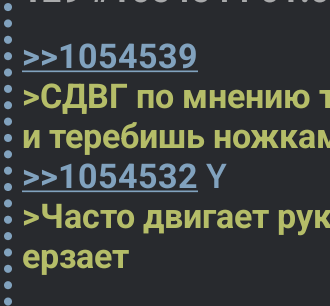 >>1054539 >СДВГ по мнению тупой свиньи: бегаешь и теребишь ножками >>1054532 >Часто двигает руками или ногами или ерзает