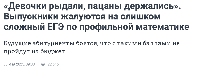 Я уже много раз писал трактаты по поводу того, что нет смысла готовиться к ЕГЭ, когда тебя никто не поддержит в этом действии и никто не позволит за успешную сдачу ЕГЭ... Сейчас я, нова убедился в этом...