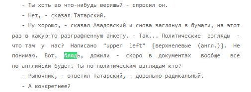 >На остальной твой пост, как и обещал, отвечаю: ни разу в жизни не встречал человека, который бы писал слово блядь через т. Ты такой первый. И если уж ты любишь ссылаться исключительно на официальное, игнорируя авторитетное, то принеси результаты какого-нибудь опроса. Официального. Ну это заведомая ложь, как минимум потому, что твой подсос-антисдвгшник пишет "блять". Ты это точно видел. Официальных опросов на тему "что вы используете: блять или блядь" не существует, и ты прекрасно это знаешь. Максимум что могу сделать - это в каком-нибудь чате в телеге на пару тысяч человек провести анализ того, как различается частота использования этих слов использую поиск по слову.