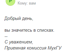 >>1061635 Я охуел и спросил открыто, студентки из приёмной комиссии не прочухали. >>1061642 Да-да, ага, да. >>1061643 >только конченные параши закрывают приём раньше 25 числа Согласен.