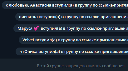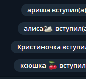 >>1062940 Абсолютно такая же ситуация. Тоже у половины из группы стоят уменьшительно-ласкательные формы имён + эмодзи или премиум-статус опционально. Видимо, это просто модно так.