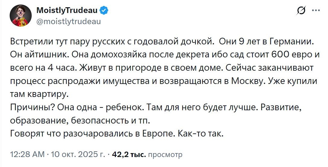 Вообще, мне прям жалко стало этого степаноида, которого натрашка-жена держит в масквабаде на спидорахии. Меня тянка наоборот гонит копить деньги и учить немецкий, чтобы я её побыстрее забрал с нищей спидохуесосии в нормальную страну.