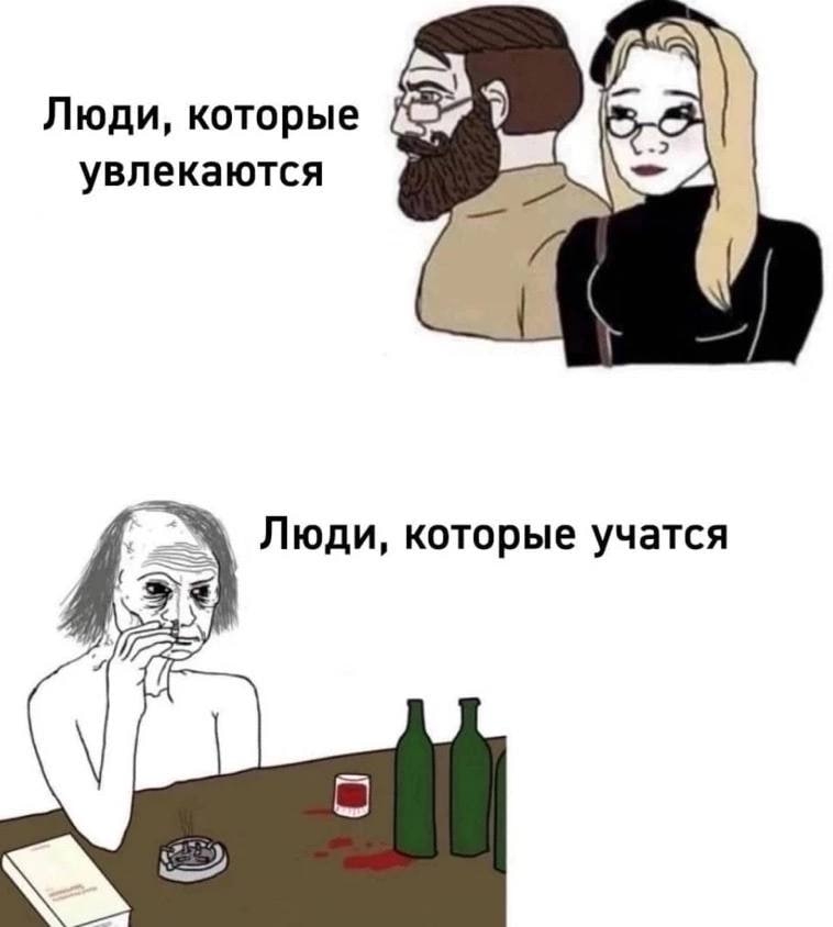 >По сути мне эти вузы и не помогут выйти в свет нихуя, ну максимум помогут сесть на госуху за 50 тыщ или в офис (и то уже не факт, я старик) Всё так, лучше с головой работать если хочешь вылезаторство, а если и поступать в таком возрасте, то на заочку и не гоняться за именно топвузиками.