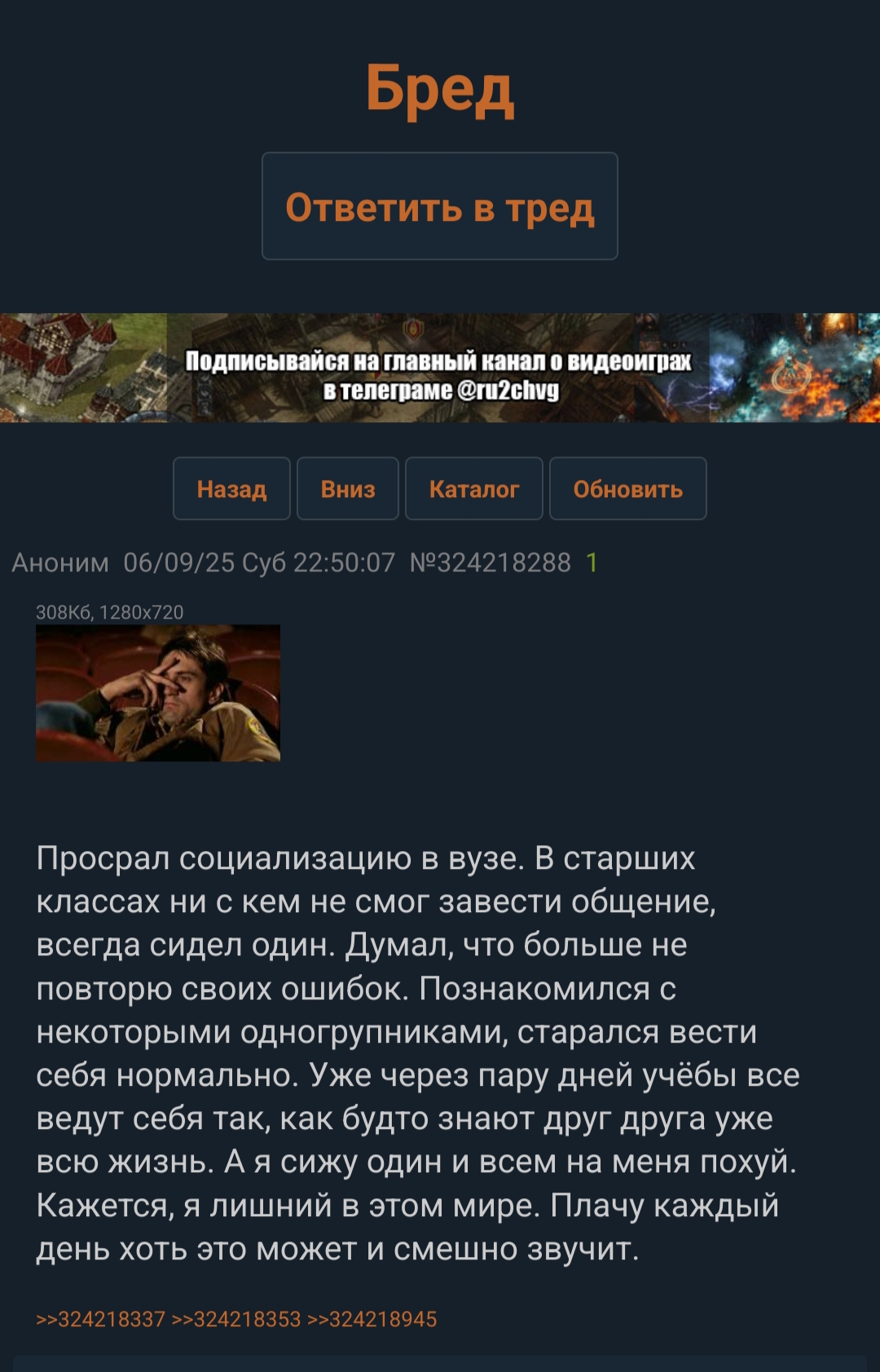 Как-то с одной стороны все и заебись, одногруппыши неплохие, с одной компашкой заобщался, направление годное, вуз хороший. А с другой стороны настроение думерское пиздец. По кд туплю, пропуск забываю, омежусь разговор начать, накручиваю себя, что опять аутсайдером останусь и придется в соло лямку тянуть...... Есть сеймы? 21 лвл, больше шансов на поступление не будет.