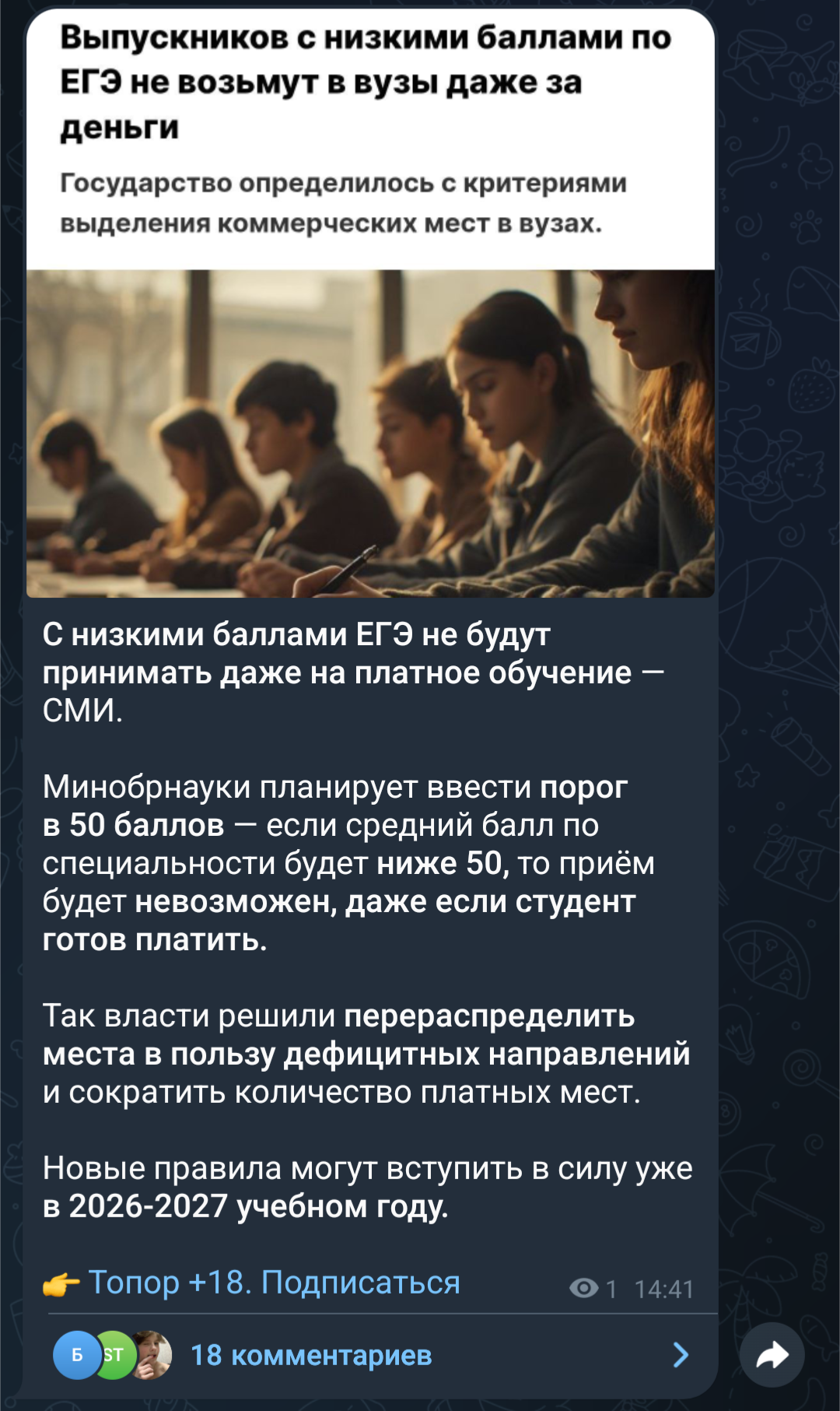 > ЕГЭ нужен чтоб поступить в вуз А НЕ ПРОВЕРЯТЬ IQ. Он для абитуриентов так нужен. А в минобре им в том числе IQ замеряют. Вряд ли преподы и деканы в восторге от фанатов калика, которые по-русски с трудом изъясняются и математику только за 5 класс знают. Но им приходится на них время проёбывать, потому что они их обязаны учить, раз они поступили. А толку от таких выпускников 0. Пусть идут в ПТУ где им и место