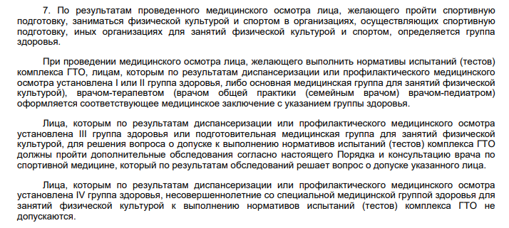 В основном документе (1144н) пишут что по результатам диспансеризации или профилактического медицинского осмотра устанавливается группа здоровья врачом-терапевтом (врачом общей практики (семейным врачом) врачом-педиатром) и в соответствии с группой здоровья по тебе врач принимает решение, то есть для допуска он должен знать твою группе здоровья. Звучит хреново. Я в поликлиннике в последний раз был в 2016 когда мне мама сказала перезаписаться из детской и в рот ебал проходить по-сути диспансеризацию с врачами которые работают один час в неделю.