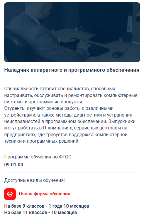 >>1079993 >Вы в курсе что за один год и 40 тысяч рублей можете получить средне-специальное образование анальника А нахуя оно нужно? У меня одноклассник пошел в наше мухосранское ПТУ "колледж" учиться на программиста, закончил, отслужил в армии, потом работал где попало на стройках, на шиномонтажке, на заводе, нигде долго не задержался, в 2022 году уехал на СВО и там где-то остался навсегда.