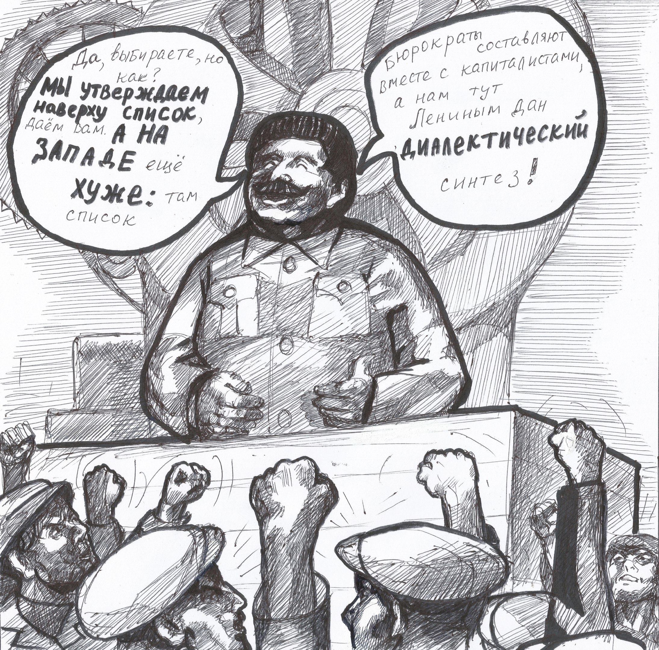 >>38090 >без закрепленного права собственности средства производства со стороны рабочих ППППППФФФФФФФФФФФФффффффффф > и с большим количеством бюрократов Лоооол Самые сознательные рабочие могли только бастовать, да давать по рукам буржуинам, которые пытались развалить заводы, чтобы выкинуть на улицу тех же рабочих. Толкнуть готовые заказы, раздобыть топливо. Но на что-то более крупное в плане экономики - НЕТЪ. В итоге имеем - власть советская, опора - рабочие, специалисты - буржуазные. Смогли ли до войны создать что-то иное? Да, выросло целое поколение новых рабочих. специалистов и прочее, прочее. А после войны имеем овердохуя убитых рабочих, снизу давить сложнее, партия резко раздулась, чисток с 39 года не проводилось. Враждебные элементы остались. "Наши деньги, ваш товар - хорошо" порешили оставшиеся без присмотра бюрократы и военные чины.