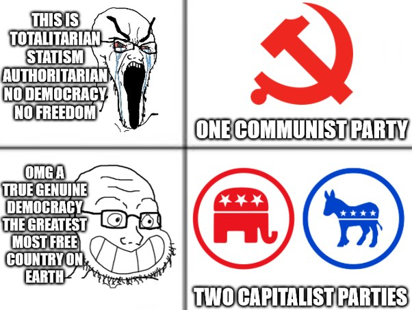 >>101266 (OP) США - чтоб построить коммунизм нужно только сделать рабочий день 6 часов и максимальный капитал в 100млн. Россия - ЧТОБ ПОСТРОИТЬ КОММУНИЗМ НУЖНО ВСЕХ УБИТЬ! РЯЯЯЯ!