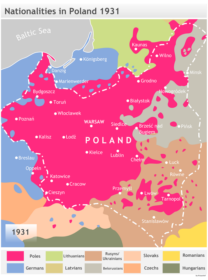Кроме того, несмотря на то, что Люблин и Белосток показаны чисто польскими, конечно, поляки там не 100% населения. Тоже самое и с регионами. Карта - херня на постном масле.