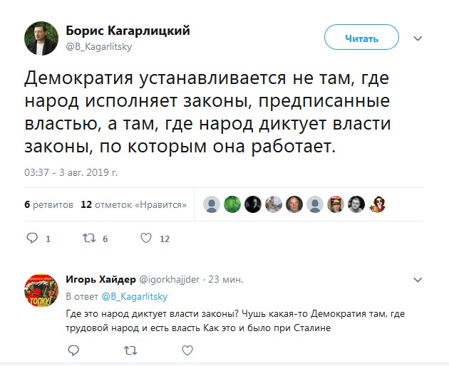 >>71287 Он считает, что левые должны поддерживать протест и участвовать в нем т.к. это общедемократическая оппозиция против произвола власти. Он даже оправдывал Удальцова, лол, что он не ходит на митинги, уголовка все такое, будто он нуждается в оправдании.