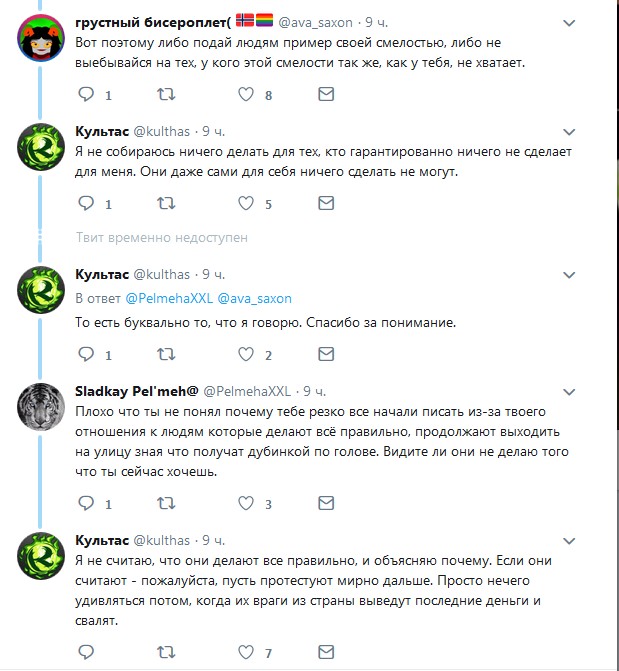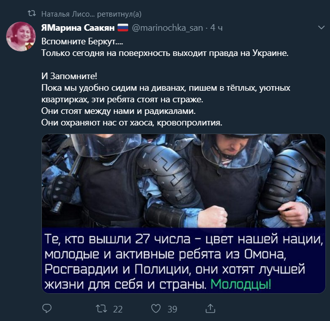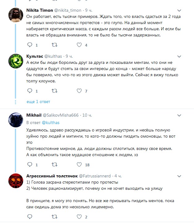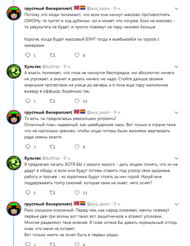 И раз уж речь зашла про опиздюливание ОМОНа. Если и в самом деле протестующие станут дружной толпой давить их с известными последствиями для ОМОНа же (травмы, увечья в т.ч. необратимые и т.п.), то сколько из псов режима дадут заднюю со словами "рее у нас семья-детишки, нахуй надо" и проч.?