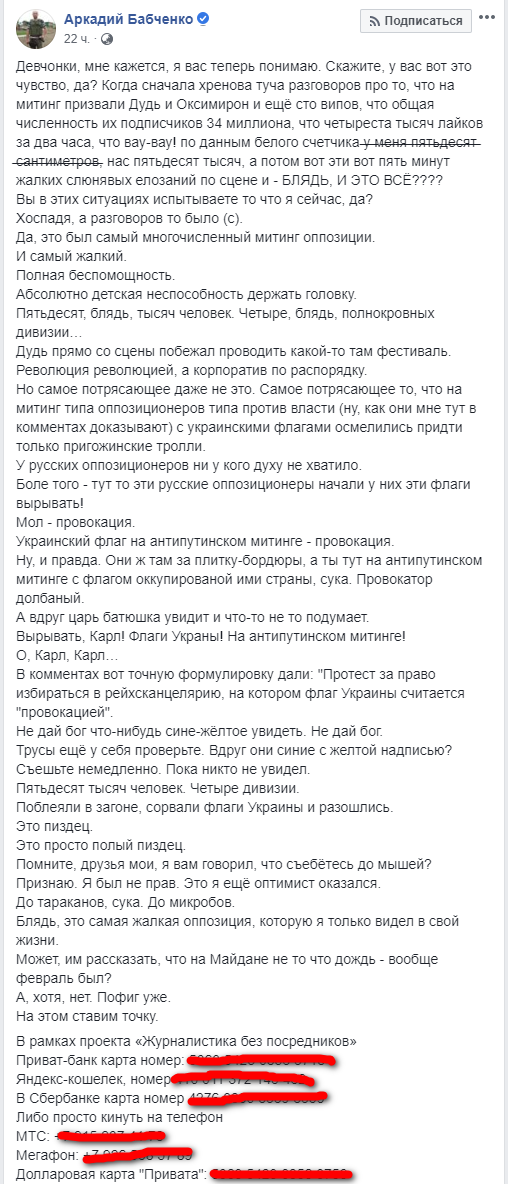Например ты знаешь почему и за что вчера был сисинг? Он был за допуск кандидатов на выборы, которых сняли. А знаешь почему их сняли? Потому что из 5000 необходимых подписей было собрано всего 500 и часть из них были мёртвые души. То есть кандидаты ОБОСРАЛИСЬ изначально сами и когда поняли что ПО ЗАКОНУ они проебались, то решили устроить сисинг и майдан. Это самый натуральный террор.