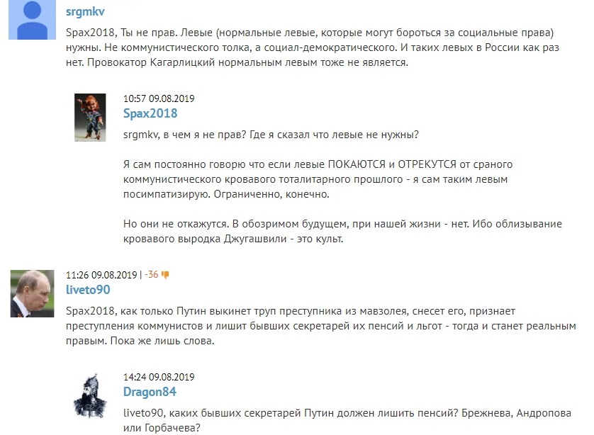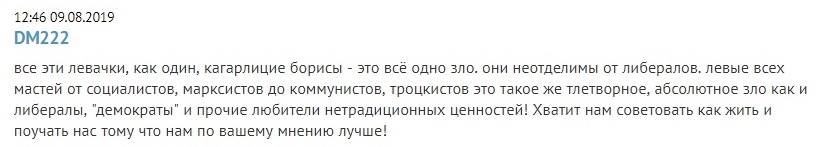 Здесь не любят: сталинистов, маоистов, полпотистов, ходжаистов, посадистов, анкапов, фашистов, ельцинистов, хрущёвцев.