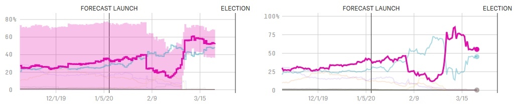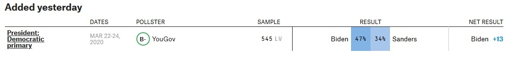 Общенациональный рейтинг Байдена продолжает рушиться. Как известно, до дебатов с Сандерсом его рейтинг составлял почти 60%, но сейчас уже 47% (первый скрин), и он продолжает падать. На Гавайях (второй скрин) симпатии американцев распределились следующим образом: Сандерс 51%, Байден 49%. И этом при том, что недавно вышедшая из предвыборной гонки член Палаты представителей от штата Гавайи Тулси Габбард, которую поддержали многие гавайцы, выступила в поддержку Байдена. Рейтинг Сандерса возрос также и на Аляске (третий скрин): 47% против 53% у его оппонента.