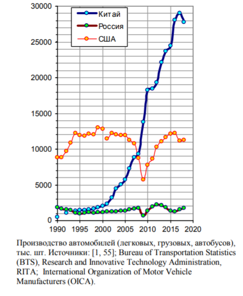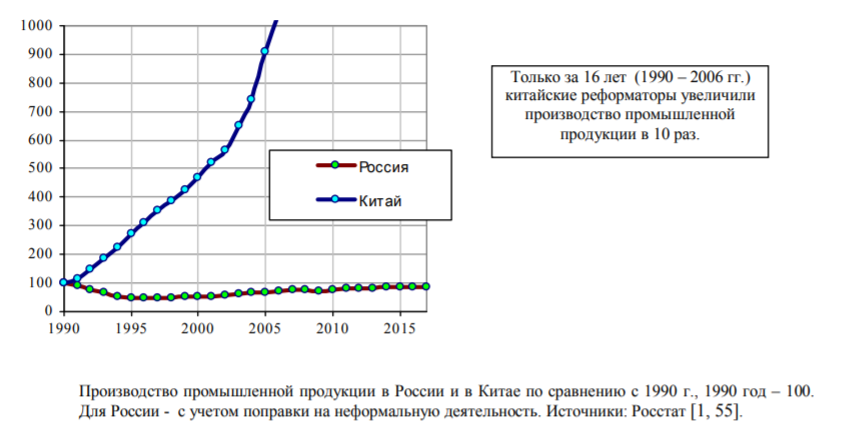 В области промышленного производства произошел по настоящему тектонический сдвиг. Более 100 лет здесь доминировали США. Даже СССР смог достичь только около 80% объема промпроизводства от американского к 1990 году. КНР сейчас превосходит США по этому показателю более чем в ТРИ раза! Это наглядно демонстрирует преимущество советского типа государства.