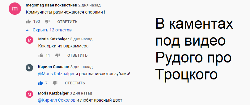 А насчёт Рудого и Вестника Бури - у них редактор или кто там троцкист, от него вся зараза идёт. Тот, кто подготавливает темы для роликов и статей и кто подбирает ссылочки и цитаты очень любит цитировать мнение Троцкого на все проблемы.