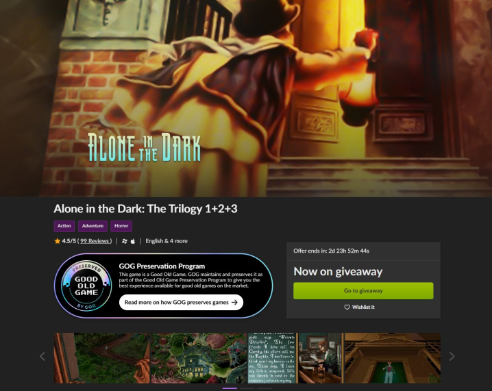 В гоге раздают первые три Alone in the Dark. https://www.gog.com/giveaway/claim