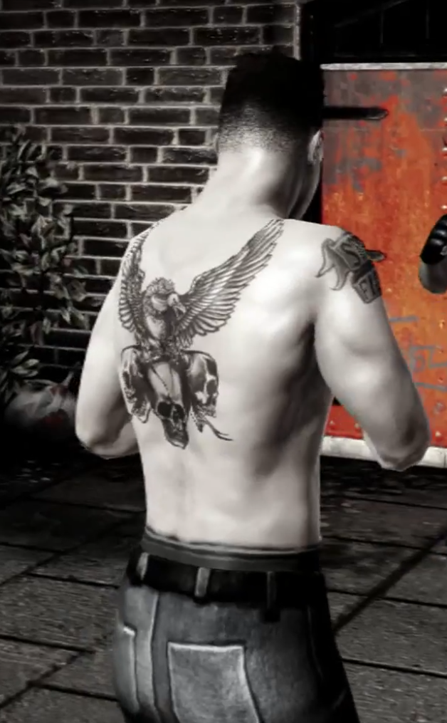Помню, играл лет 5 назад в игру на playstation3 The Fight: lights out. И там в костомизации персонажа была крутейшая татуировка во всю спину с тремя лицами призраков или что-то такое. Поиск в инете результатов не дал, так как игра не была очень популярной. Приставки давно уже нет, а я эту татуировку до сих пор помню. Помогите найти и, если можно, заскриньте её