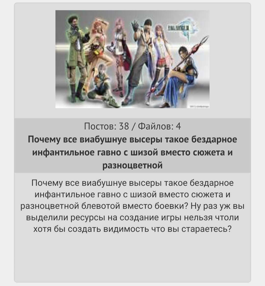 Просто я увидел этот пост и меня позабавило, как на основе одной из самых худших игр во всей франшизе он судит все японские игры. Помню, что Русяич обосрал эту игру.