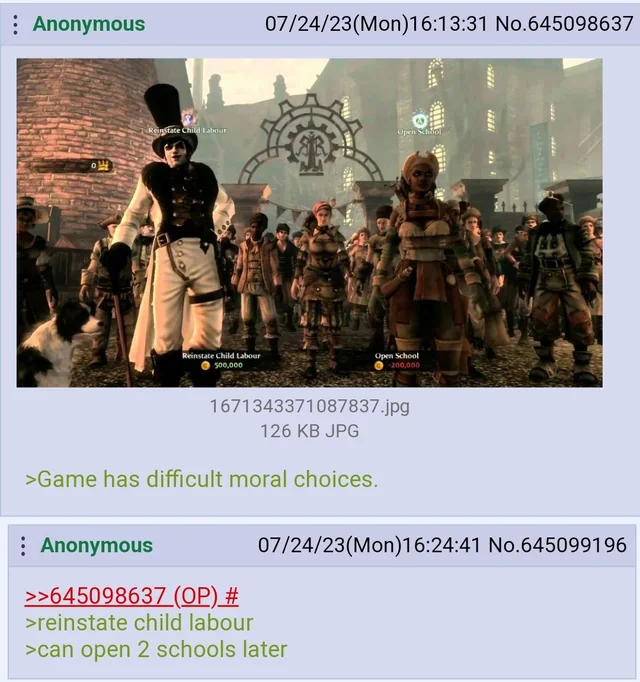 А вы помните, когда рпг не заставляли вас быть соевым дебилом и позволяли отыгрывать ебнутую мразь?