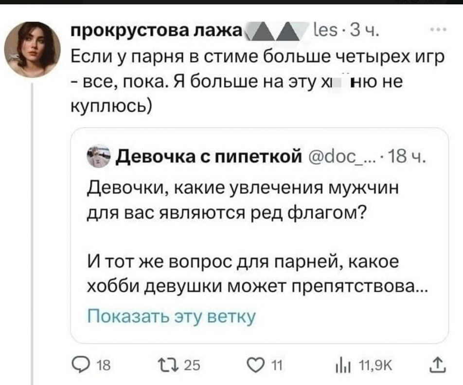 >>9732047 так тут не про покупахерство она имеет ввиду а типо если у него 4 игрушки то он мало играет а если у него дохуя игр то она с ним не будет но ты тупой не понял