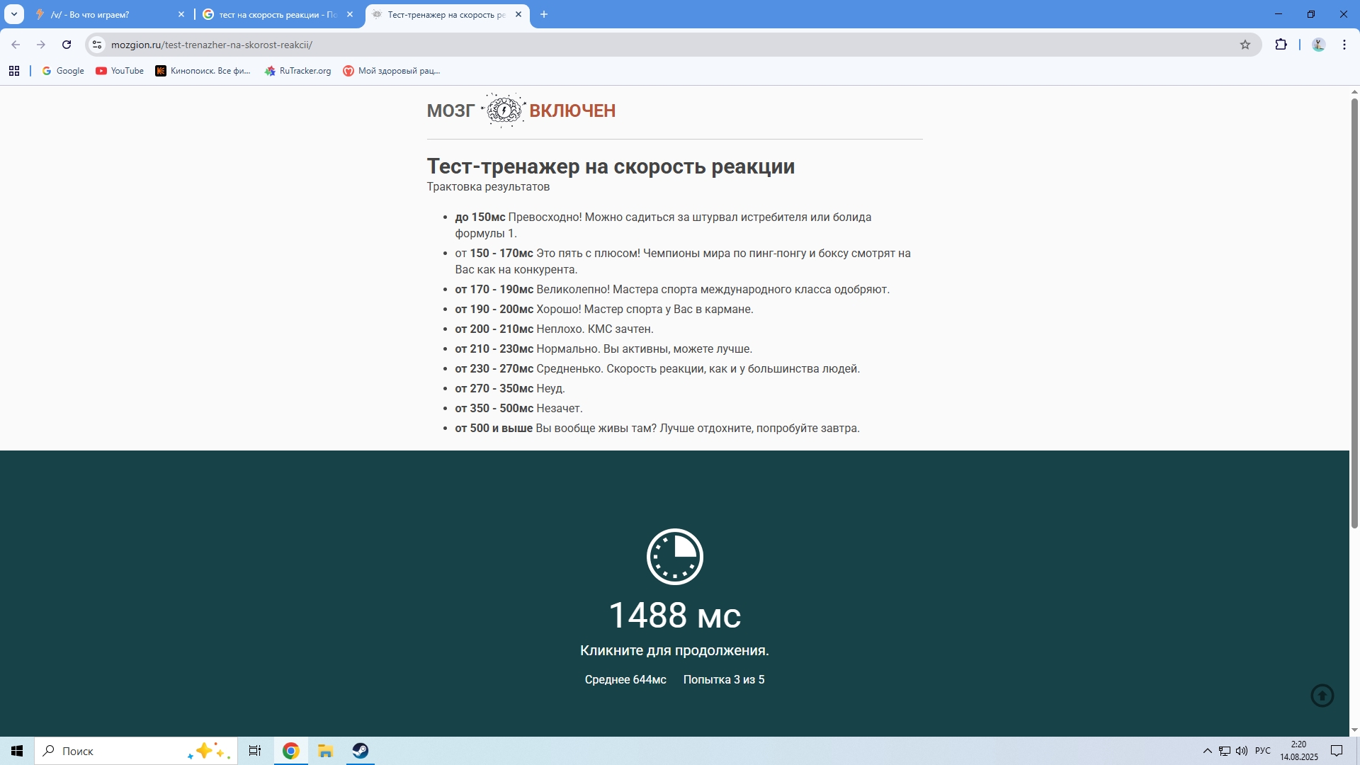 >>9732338 Так у тебя не результат молодого. Точнее, если есть условный зумер с реакцией 170мс и скуф с реакцией 170мс - они оба никогда не станут топ игроками в фпс. Какая нахуй разница, дебиленок? Разговор о компетитив играх на топ уровне, а не твоя раздрочка сайта с результатом ЧУТЬ ВЫШЕ ОБЫЧНОГО.