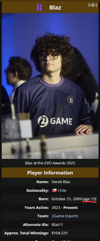 >>9732314 Внатуре. Ну вон я открыл прошлый Капком Кап, смотри пикрил. Но да, эта ниша все же кишит скуфами. Победителю того капа (он же highest-earning player в файтингах) 27 лет. Еще не совсем скуфяра то есть, в 27 еще можно ебашить и таких примеров было немало. 30 - точка невозврата