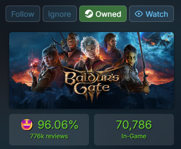 >>9736686 Либо боты, либо люди умершие за компом, либо сумасшедшие накручивающие часы. Скорее всего все вместе. У меня есть друг у которого почти 700 часов в этой великолепной игре, но ачивки за прохождение нет. Я же правильно понимаю, что за любое прохождение должны дать чивку "Всё хорошо, что хорошо кончается"? Что он там делал все это время он внятно объяснить не смог