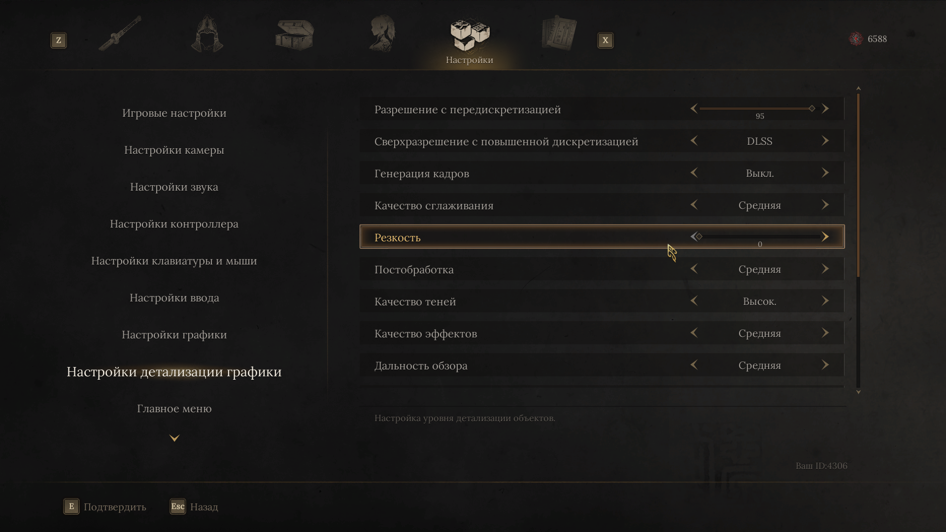 Выруби полностью - поставь 100% и не будет никакого масштабирования потом подбирай резкость. Потом можешь до 80% опустить это все будет в пределах длсс качества если не хватает фепесов, если же хватает оставь на 100 тогда будет не длсс а только сглаживания из длсс - длаа.