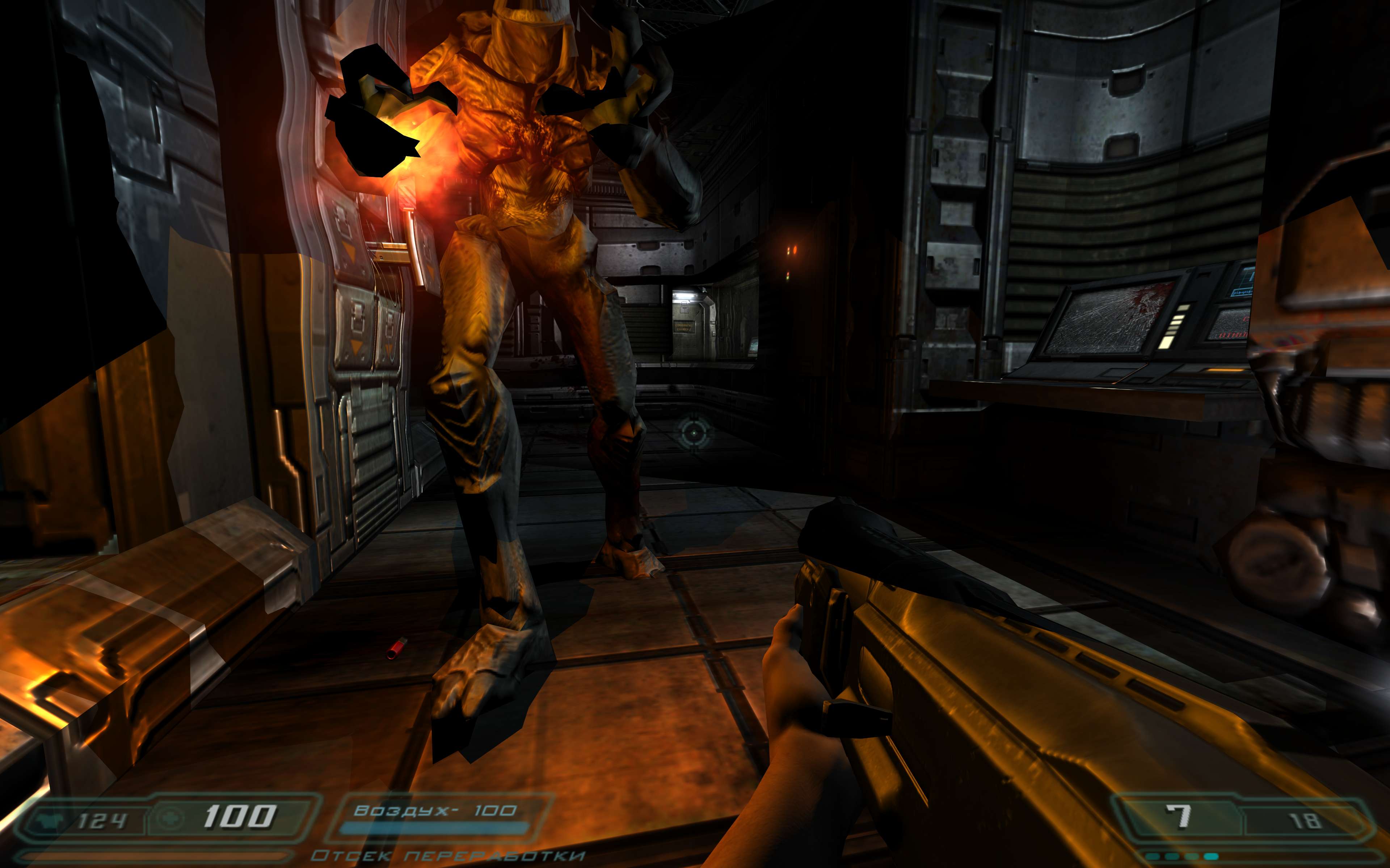 ДУМ 3. Наконец-то я прошел эту игру. Не ДЛС, оно потом. Играл в БФГ Эдишн, ибо оригинал глючил и вылетал, хотя в Стиме есть тоже. Сюжетно - ремейк Халфы 1. Но интересно все равно, там куча дневников всяких, которые раскрывают лор и события до сюжета. Интересно слушать и читать нагнетающие истории о том, что где-то происходит какая-то херня, а вокруг все потихоньку ломается и сходит с ума, буквально. В Халфе 1 и ее ремейке такого не хватало очень. Графон - хороший для своего времени, во многом из-за освещения. Да, теней от фонаря в БФГ Эдишн нет, но остальное все равно хорошо смотрится. Но не модели и текстуры. В Фире лучше даже. А уж про Халфу 2 и писать не стоит, хотя в ней, справедливости ради, очень маленькие уровни. Саунтрека в игре нет, я не заметил его. Но охуенный звуковой дизайн. Все как-то работает, искрит где-то. И еще куча звуков похожа на монстров каких-то, что при комбинации просто инфернальный эффект создает. Инфернальный эффект в инфернальной игре. В игре худший дробовик в истории видеоигр, просто пиздец. Он стреляет так, будто у него патрон прямо в конце ствола воспламеняется. Представьте, что вы в своей комнате хруща из двери стреляете - и накрывает всю комнату рандомно. Попасть почти нереально, если не прям в упор стрелять. Так же в игре самый легкий босс в игре. Тупо зарядить душекуб 4 раза с начальных мобов, которые там бегают, и все. Я там умер один раз, но я просто упал. Вообще на средней из доступных сложностей от врагов я не умирал вообще. И еще немного про душекуб. С получением душекуба игра становится реально душной. В каждую ебучую комнату начинают по очереди телепортировать врагов, при этом нередко жирных, типа огнеметчика и рыцаря ада. И всех по очереди. Это несложно, просто тягомотно каждую комнату вилкой чистить. К тому же там бектрекинг начинается и комнаты по 2 раза надо чистить. Если сравнивать - это как ДЛС Этернела после основной игры.