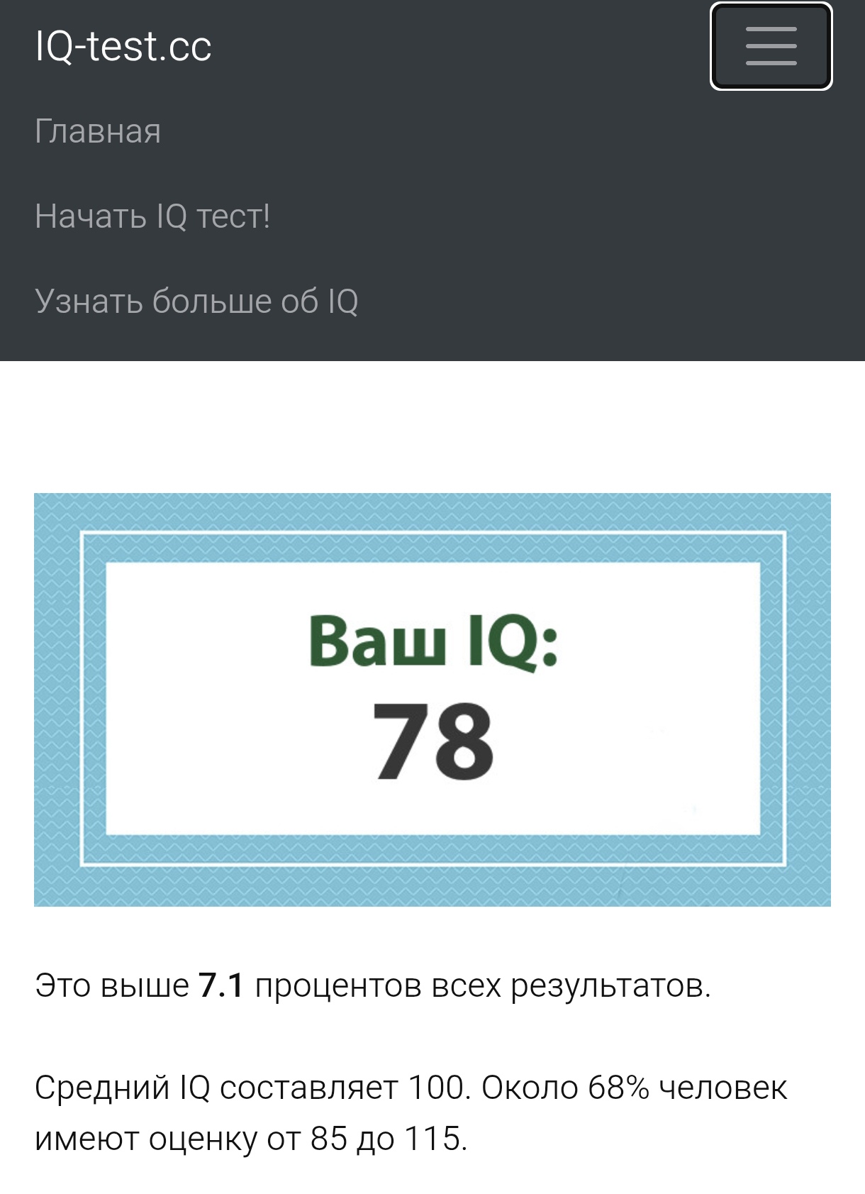 Нахуя ты ковыряешься в этом кале для мемов? Прошел, пукнул и забыл. Если хочешь реальную цифру то топай к психиатру.