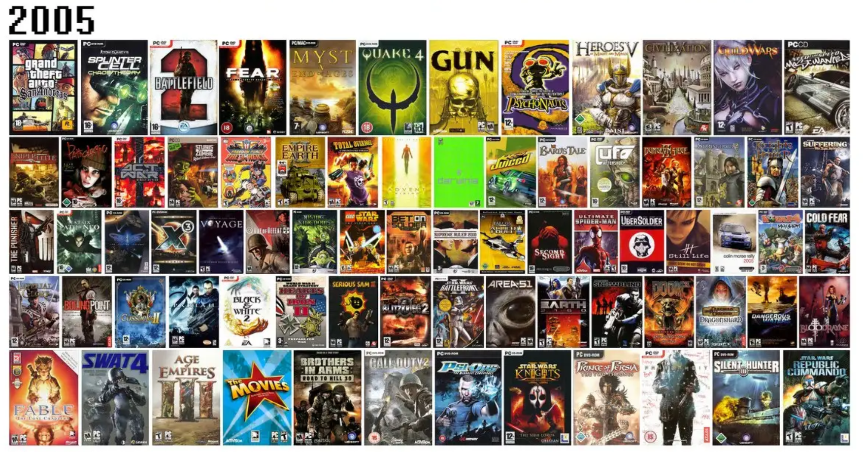 2002 вообще гига год для игр, как ни крути, конечно если ты шутеродаун пиупиу стрелянный воробей, то оно было не оч, наверное, для остальных раздолье. Хитман 2, мокровинд, готика 2, аркс фаталис, ЖТА вайс сити, мафа 1, варкрафт 3, NOLF 2, невервинтер первый, стронгхолд крузейдерс. Даже первый ретчет и кланк, хоть это и консольная такая бродилка. Ничего удивительного, выход пс2, развитие 3D ускорителей, туда-сюда, компы стали чем-то гораздо более доступным, чем это было в 90-х. 2004 конечно поднял ставки, но вышло так себе, я считаю, в 2002 больше души, меньше бездушного корпоративного гейминга, вроде думасика 3 и халвы 2.