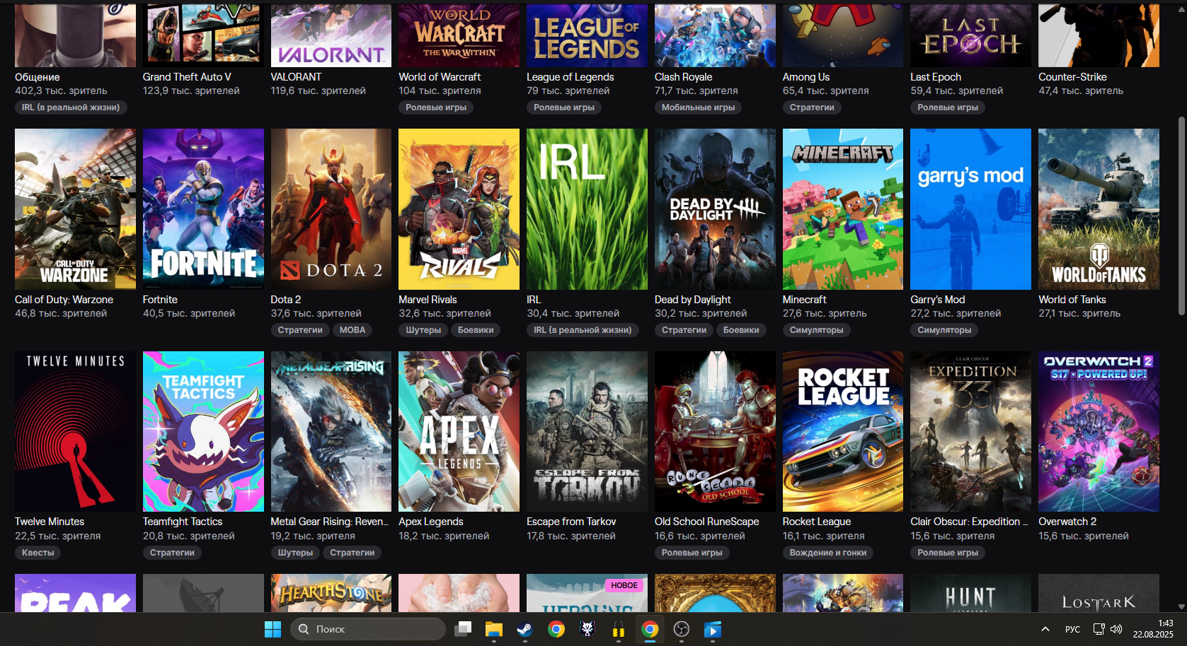 >>9746838 Пол ляма зрителей на хую выртели игры, а еще какая-то залупа про гонки популярнее твоего говна. 15.6к зрителей. Пиздец.... 80 зрителей с каждой страны, долбоеб