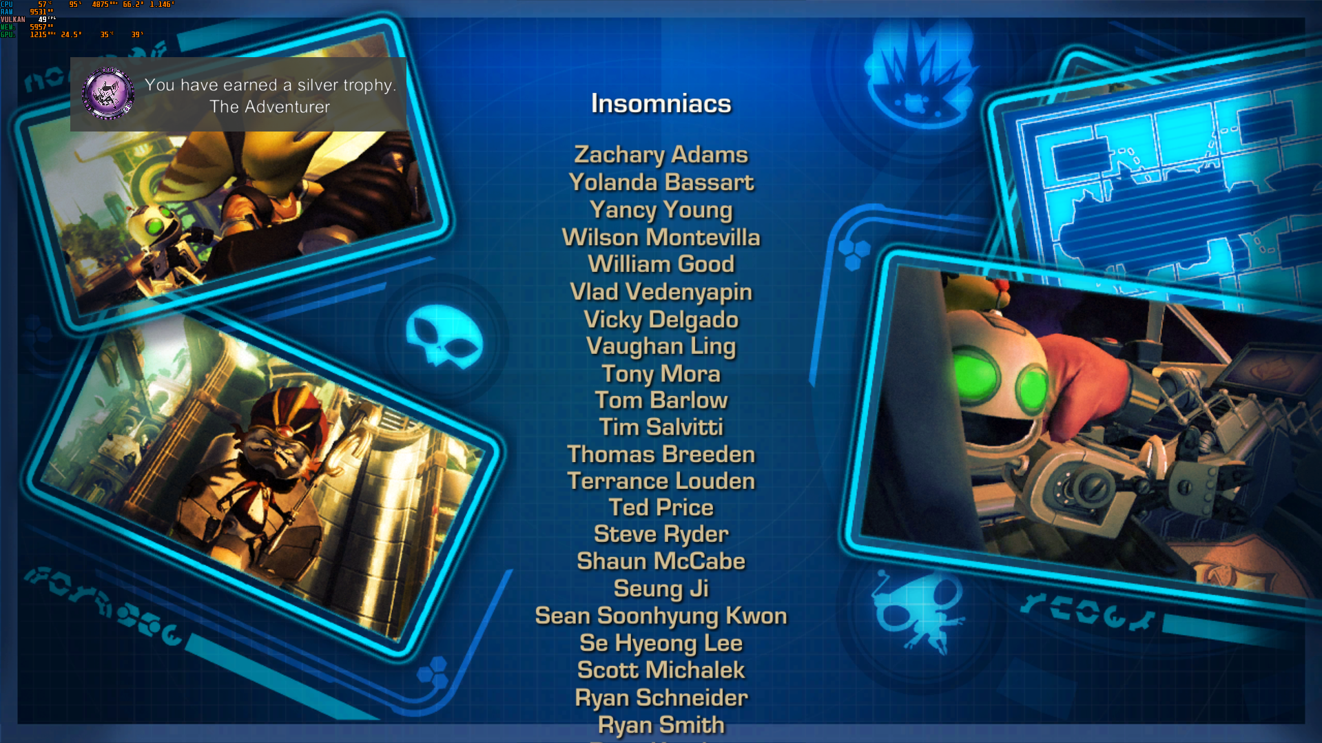 Прошёл последнюю игру из Ps2/Ps3 выпусков. Её многие критикуют, но как по мне игра норм. Да, её торопили к выходу, видно что многое повырезали, но оставили самое основное, поэтому это наименее душная игра в серии. Есть фишка с этими разрывами и управление Крэнком в них. Изменили прокачку оружия и самый топчик это Mr. Zurkon, робот который крутится около тебя и автоматом отстреливает врагов, приговаривая как он любит убивать и какой он опасный. Он был ещё в предыдущей части, но тут на втором левеле к нему добавляется робот сын а на третьем робот жена. И такая вот семейка, отпуская шуточки аннигилирует всякую мелочь около тебя. Дальше остался только ремейк первой части, которого нет на ПК а на эмуле он ещё не работает и Ratchet & Clank: Rift Apart.
