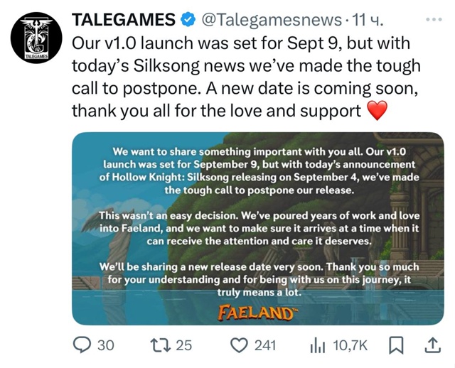 В интервью Bloomberg соучредители Team Cherry Ари Гибсон и Уильям Пеллен обсудили длительное время разработки игры, которое в итоге состало колоссальными семь лет. Ответ Гибсона был неожиданным: по-видимому, причина, по которой команда Cherry продолжала забивать Hollow Knight: Silksong, заключалась в том, что им нравилось делать игру.