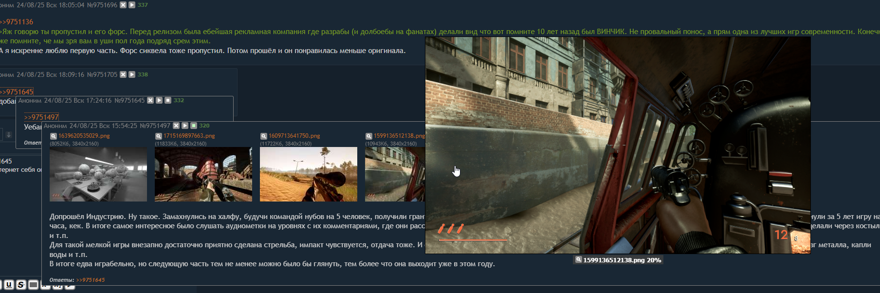 Допрошёл Индустрию. Ну такое. Замахнулись на халфу, будучи командой нубов на 5 человек, получили грант от эпик гейс, поверили в себя, добавили в игру полный набор ртх-фич, в итоге мало что потянули и еле релизнули за 5 лет игру на 2 часа, кек. В итоге самое интересное было слушать аудиометки на уровнях с их комментариями, где они рассказывали, сколько всего они не успели, пришлось зарезать, как они не знали как что-то сделать нормально и сделали через костыль и т.п. Для такой мелкой игры внезапно достаточно приятно сделана стрельба, импакт чувствуется, отдача тоже. И ещё они заморочились со звуками, отказавшись от ассет флопа и записав их самим, вские скрежеты дерева, лязг металла, капли воды и т.п. В итоге едва играбельно, но следующую часть тем не менее можно было бы глянуть, тем более что она выходит уже в этом году.