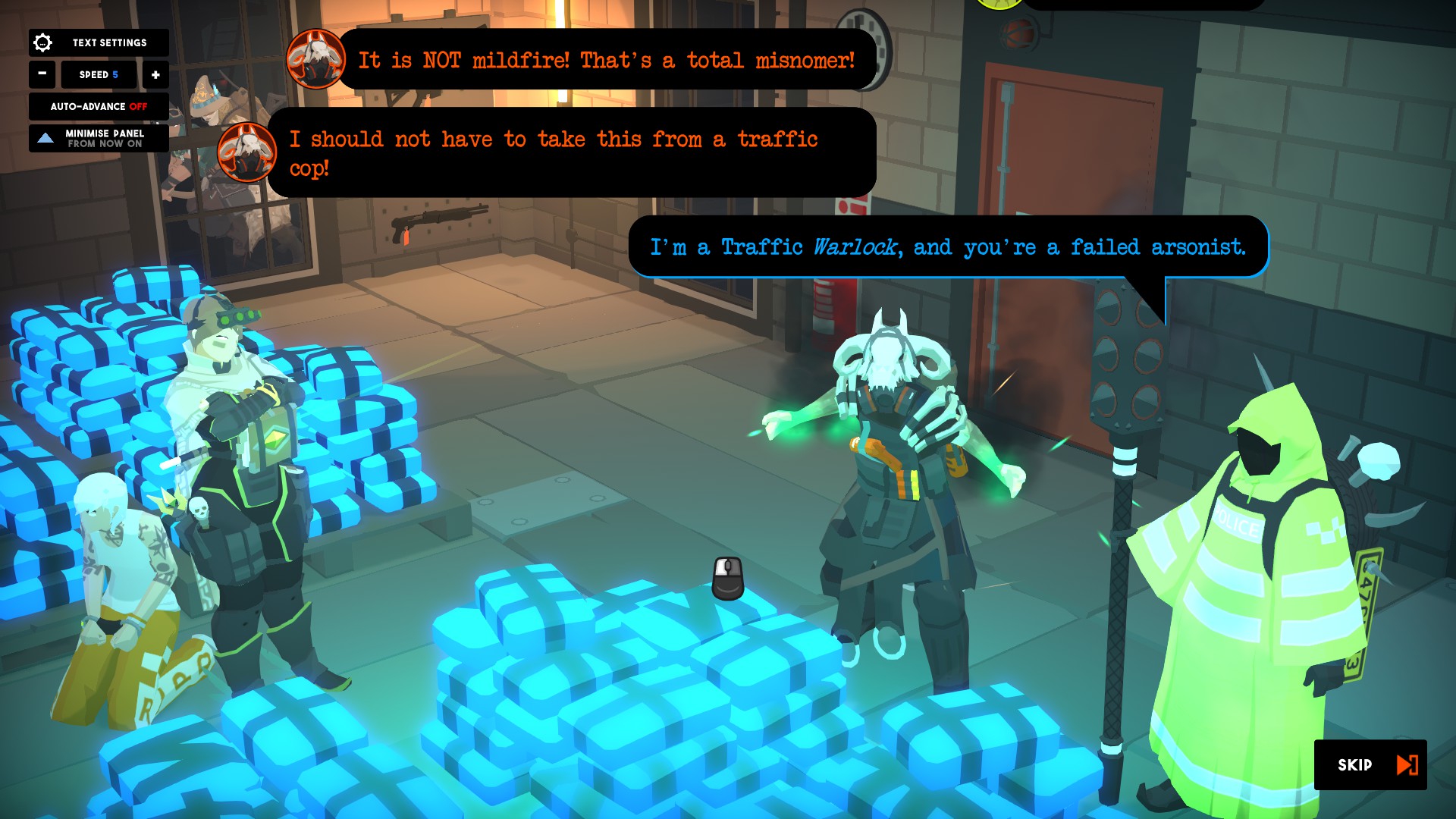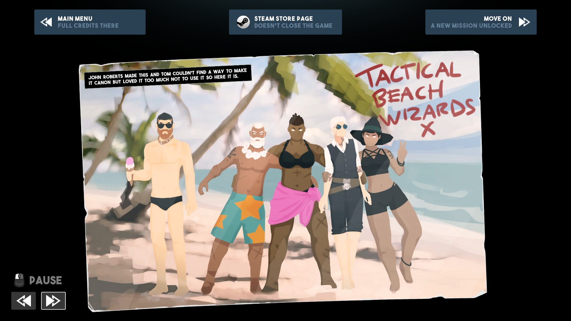В игре 5 персонажей. Дед ясновидящий, которого выперли из флота. Он умеет шмалять из волшебной палочки с тактикульным обвесом, стоять в овервотче, делать клонов и давать дополнительные действия. После прокачки дед начал косплеить турельку. Когда кто-то пиздил противника он тоже его бил. Правда иногда это подгаживало тем, что при атаке он также может сдвинуть противника, а отключить это нельзя. Ведьма частный детектив. Она в основном толкает, а не дамажит. Из-за в первой половине игре она была моим любимым персонажем. Всегда приятно выкинуть какого-нибудь жирного врага в окно или резко переместиться в тыл на метле, если арена позволяет. Некромедик. Сначала шмальнет в голову, а потом воскресит целехоньким. Самым слабый на мой взгляд перс. Возможность создать окно, куда можно выкинуть противника, перенести урон, кинуть банку с отравой или черепушку в целом полезные, но у других как-то веселее. Тянка в броне. Лучший перс. Поначалу я ебало от нее кривил. Прятаться за укрытиями не может, дальнего боя нет, может таранить, бить в ближнем бои, меняться местами с другими персами и ставить какой-то обоссаный блок. Но потом я ее раскачал и она стала мвп. Таран стал бесплатным, если поражаешь цель (включая блок) и может проходить сквозь персов на пути. Свап тоже стал бесплатный, если меняешься с союзником, и для него не нужен обзор. Блок возвращается, если уничтожен. У меня с ней бои превращались в карнавал свапов, есть у нее была мана. Протаранил, спавнул новый перс сделал свое дело и репозиционировался так, чтобы тянка могли таранить дальше, свап обратно и снова на таран. Друид ассасин. От единственный кто тянет на себя, а не толкает. Может проклинать врагов на слом брони, кидать грибные гранаты и становиться псиной, что заражает бешенством.