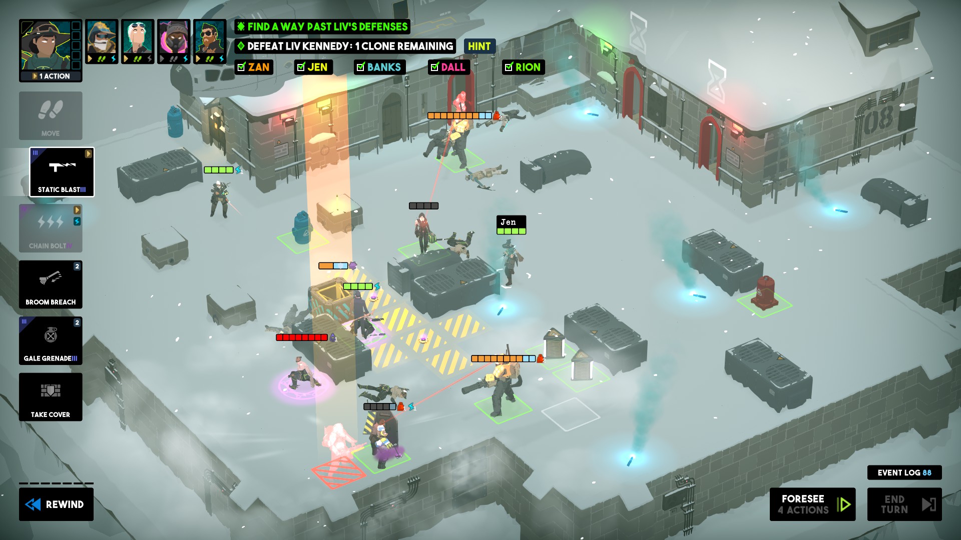 Играется это так: команда оказывается на небольшой аренке с какой-то задачей. В любой момент видно что собирается сделать враг. Нужно распланировать свои действия как можно эффективнее, чтобы выполнить задачу. Любое действие можно откатить пока не закончился ход. Тут много завязано на толкании/притягивании противника, а не прямом нанесении урона. Здесь часто приходится вышвыривать противника в окно, двигать его как, чтобы он мог не нанести урон или наоборот, двигать союзников, чтобыи он мог что-то сделать. Что мне очень понравилось, так это то, что здесь нет бесполезных персонажей или навыков. У каждой миссии есть допзадачи, вроде пройти за Х ходов и их выполнение только делает игру веселей. Отмечу, что игра не сильно сложная. Хотя над некоторыми допзадачами пришлось подумать.