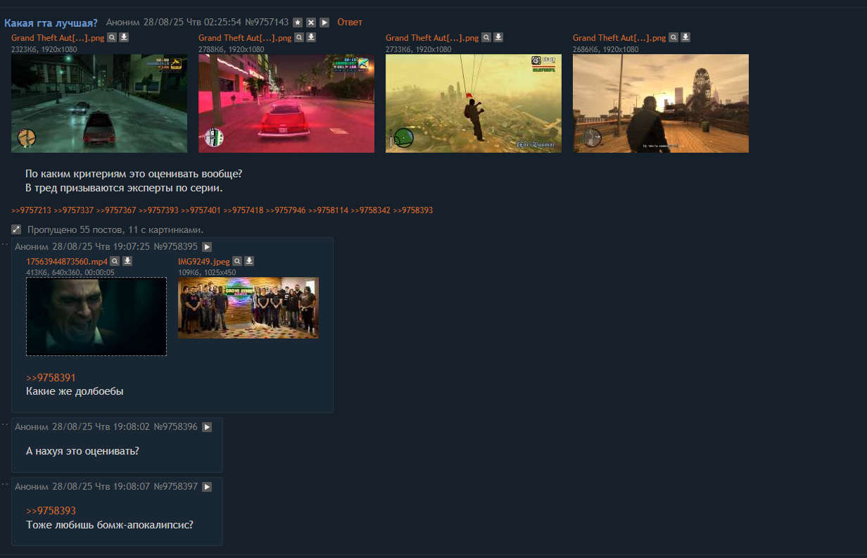 >>9757890 в гта играли все, от задротов ботанов (знал одного игравшего с выключеным звуком, чтобы родаки не отпиздили, он ещё на деда был похож с детства) до пасанов на компах пришедших пострелять в шлюх гыы. ты просто нахуй завали ебло псевдоэстет ебливый