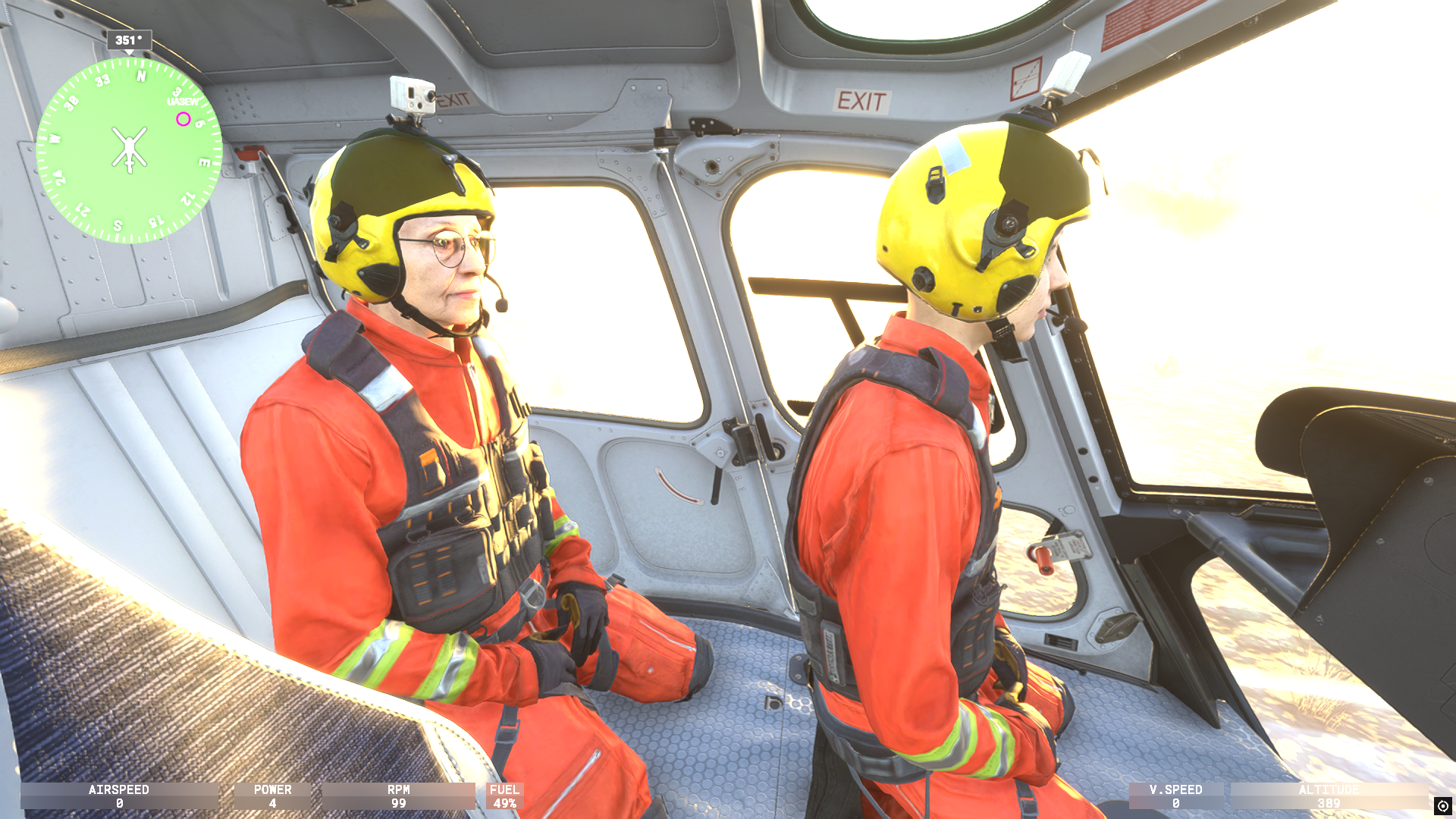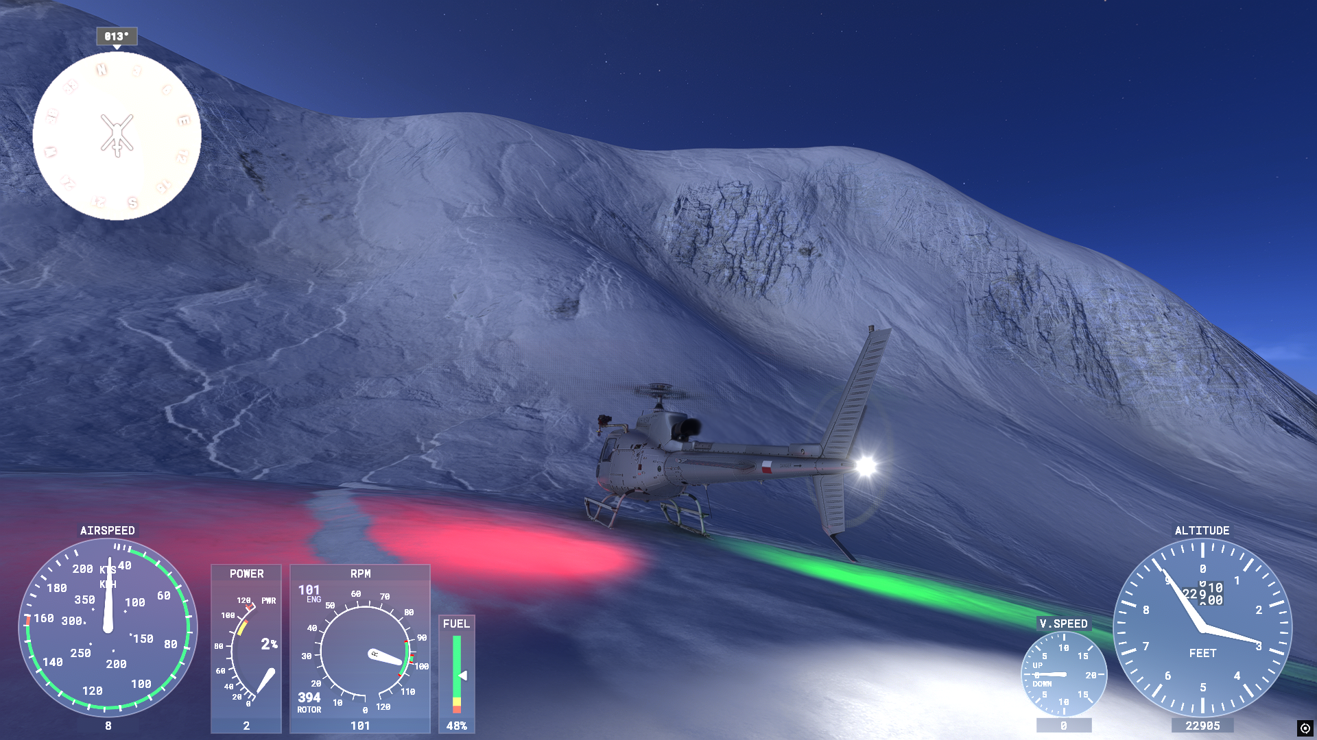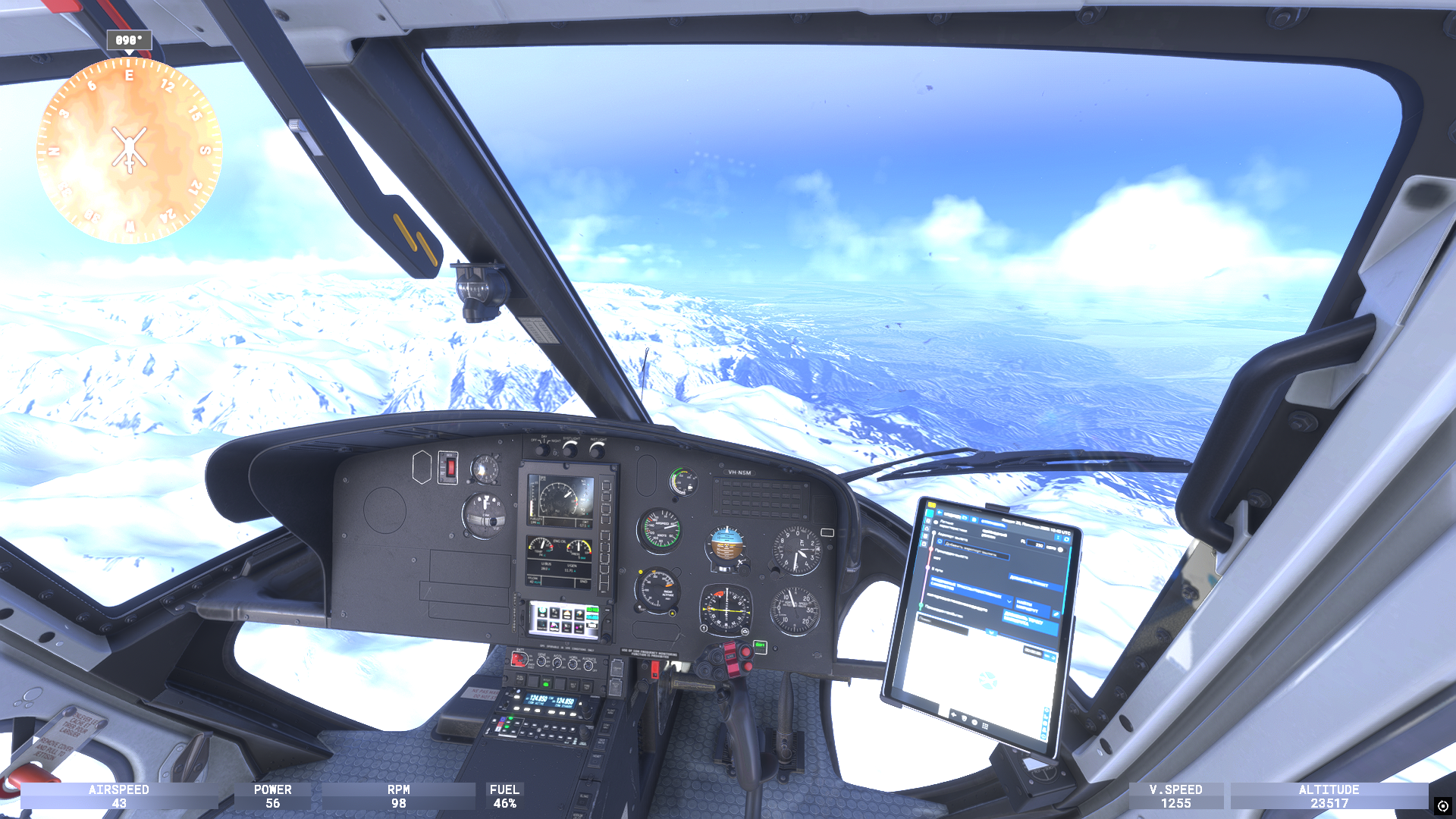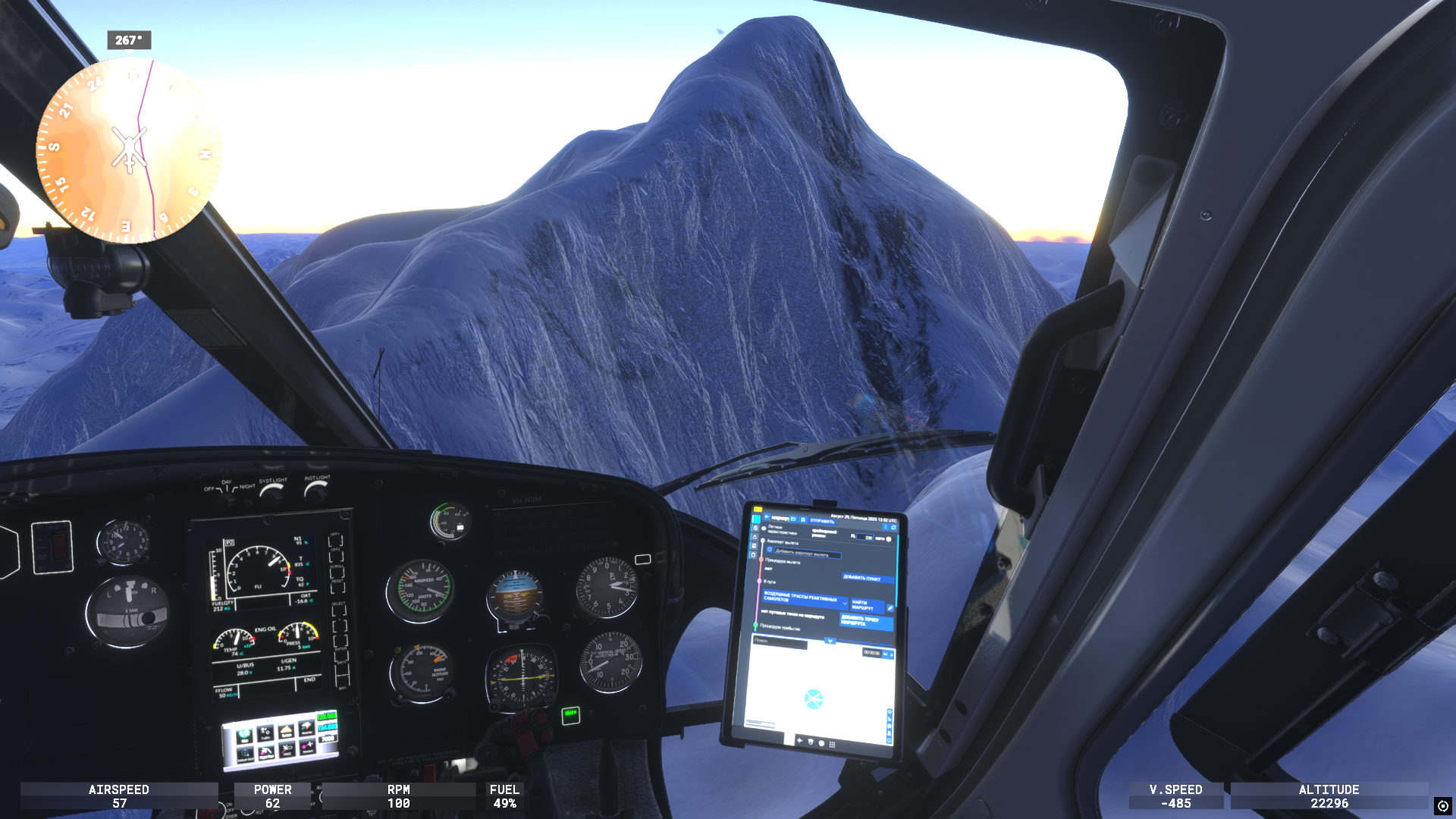 Даже в симуляции мощь природы поражает... Посадка на 23к футов прошла успешно. Если что, вертолет оборудован лебедкой, так что виртуальным альпинистам бояться точно нечего.
