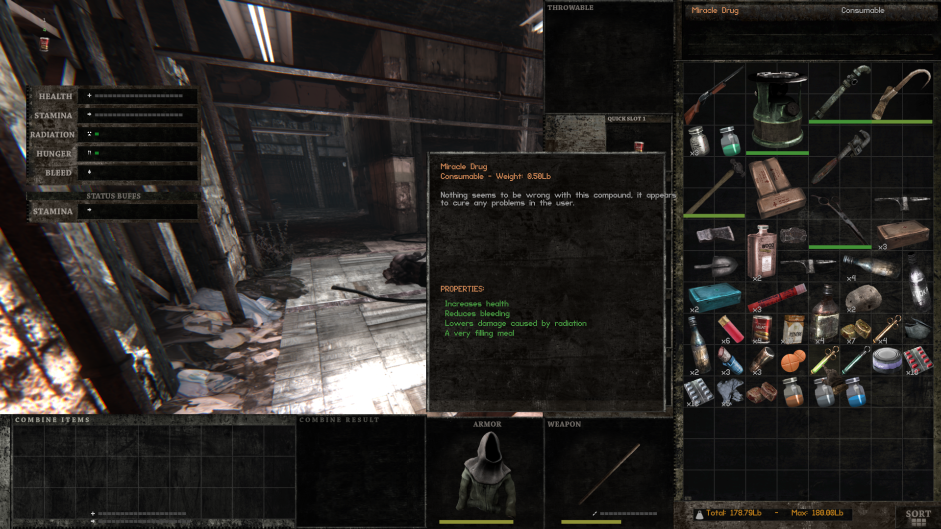 все нахуй заброшено, везде бегают нехи, пока меня ведет таинственный голос в радио, и тут при вливании загадочной хуйни в шприц она превращается в чудолекарство без минусов верю, игра, я поверил