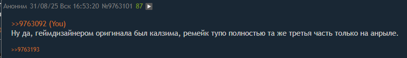 >>9763087 >калдзимы Даун, кодзима уже давно не в студии, этот срымейк делали индусы по указке корпорации для получения бабла от ностальгирующих жирных фанатов