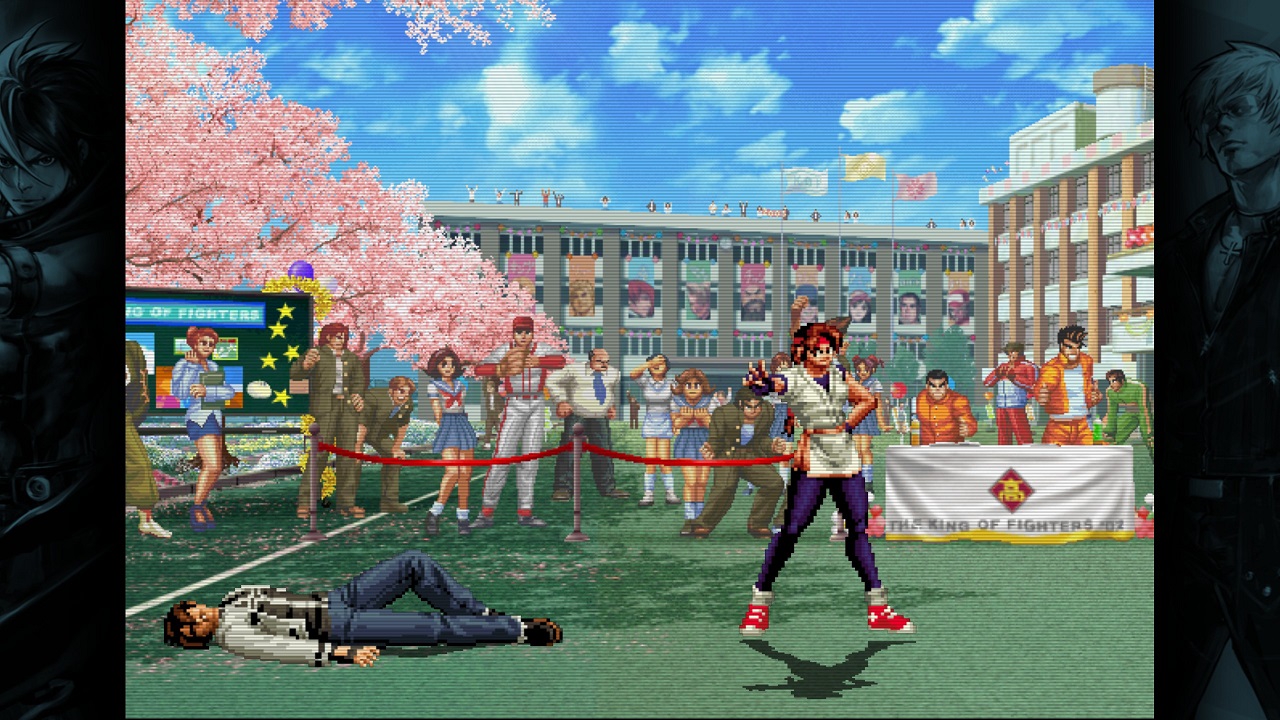 Игра дешевле проезда в трамвае. Дожили. Но вообще это же dream match, то есть тут нет сюжета и эндингов. Жаль. И почему-то нет страйкер ассистов — хотя это вроде главная фича всей саги NESTS, даром что не самая удачная. Всё равно было прикольно неожиданно выкидывать на арену какую-нибудь Лили Кейн, чтобы она махала ручкой и убегала, или Фио из Метал Слага, чтобы просто порадовать соперника своим видом; ну или чтоб Кларк выбегал с захватом, из которого можно сделать комбо, — это если вы скучный тип.