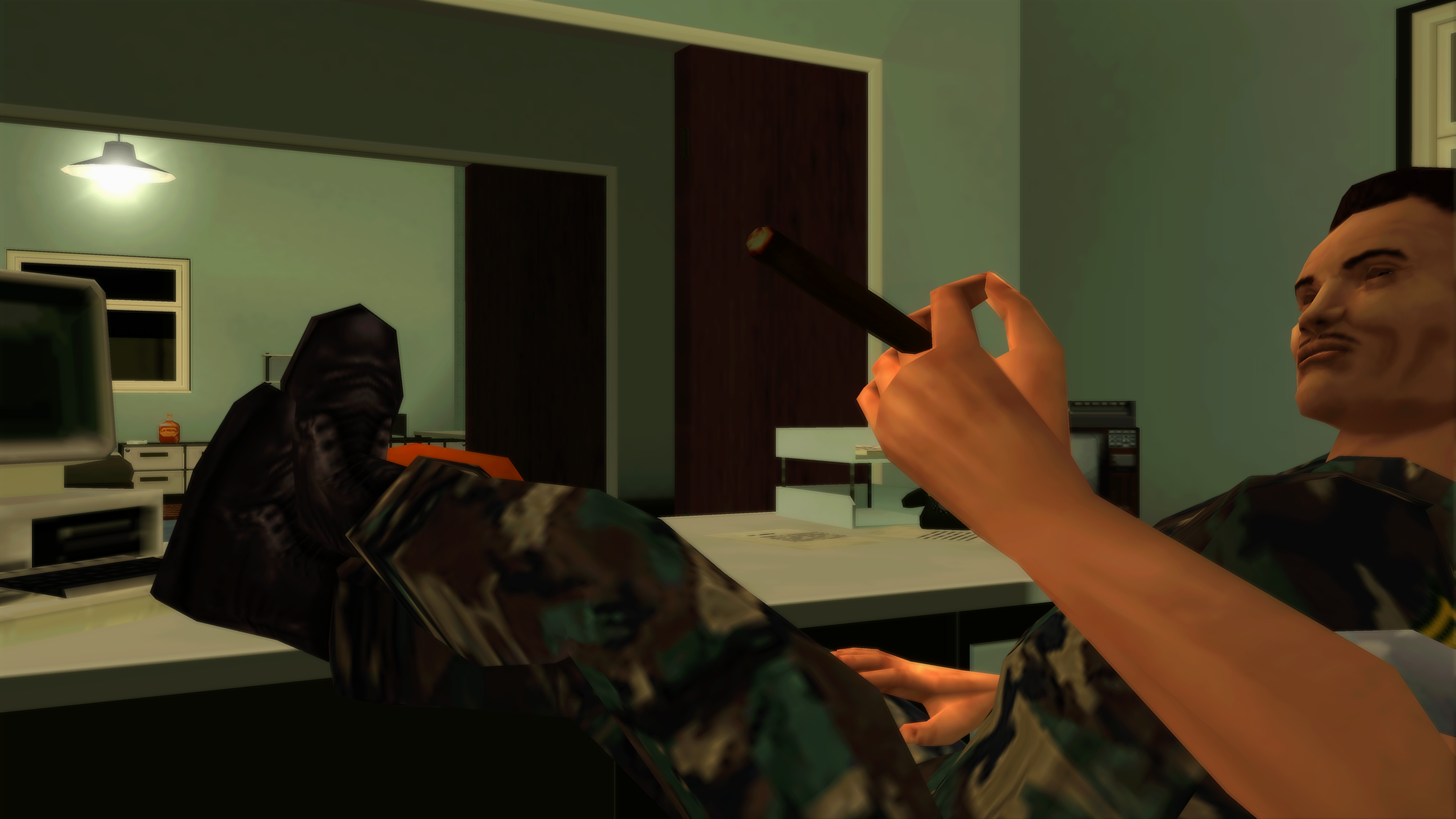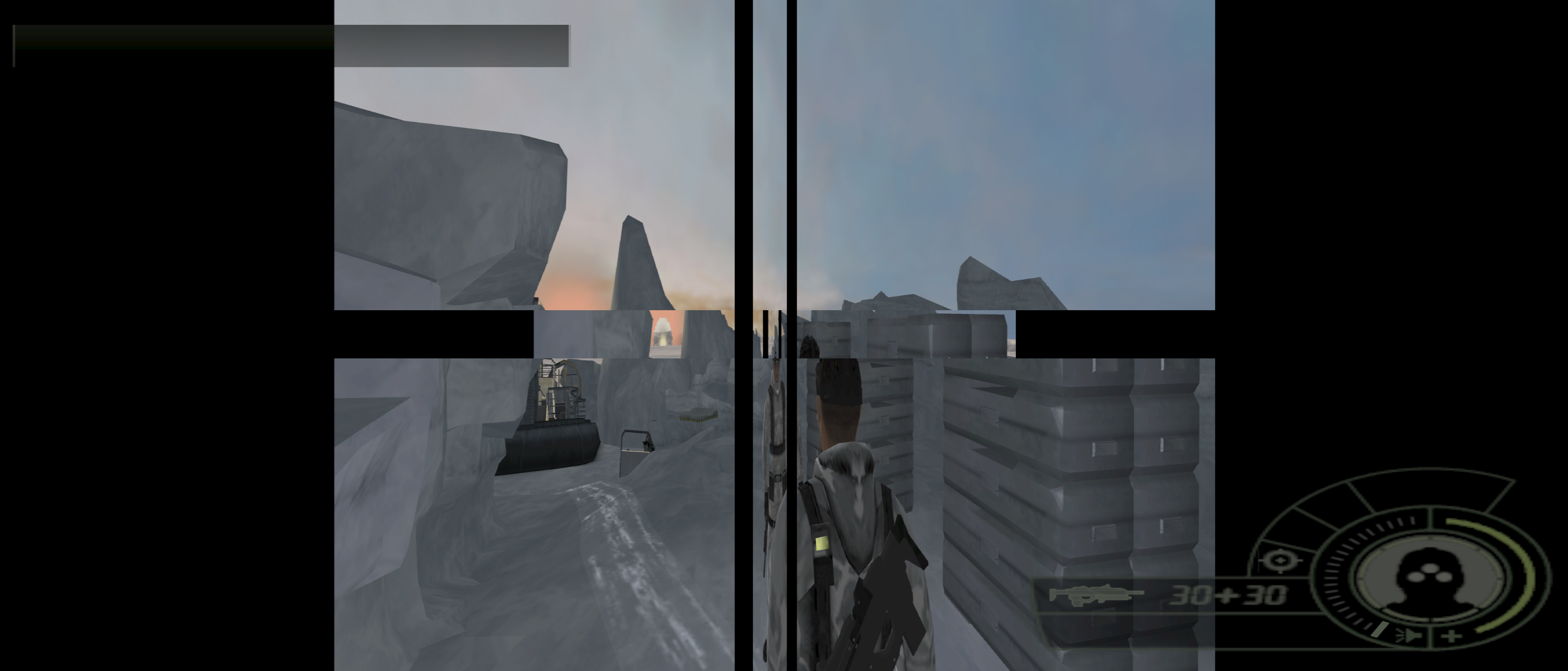 на пс2 эмуле нормальный фильтр текстур и вадскринпатч, но это говнопорт без освещения на боксоверсии ахуительное освещение но разрешение 320х240, еще и светится по бокам... сука...
