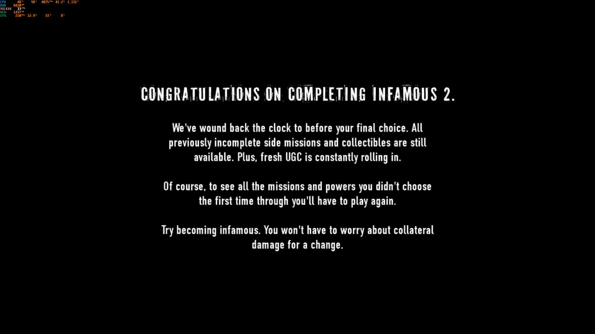 По сравнению с первой частью некоторые вещи улучшили, но столько же ухудшили. Улучшили подачу сюжета, динамику боёвки, разнообразность локаций. Ухудшили (пусть и ненамеренно) открытый мир. Теперь он больше, а пересекать его быстро не получается. Приходится тупо долго бежать особенно с ЖД депо и затопленного района. Так же сильно проседает последняя треть игры. Там короче добавили ледяного титана, который принимает тьму урона, имеет две фазы и тебе надо убивать его раз 5 или 6 подряд выполняя сайды. И самый сок, за убийство его нихуя не дают. Абсолютно. Ни опыта ни шардов, но зато проигрывается каждый раз катсцена. Вот уж вознаграждение тупикал сонибоя. Он был скорее всего создан как босс, но потом стал филлером для пожирания времени игрока. Я бы придрался ещё к выбору зло\добро, где "зло" это скорее мудачество и я хз кем надо быть чтоб первым прохождением играть за красных.