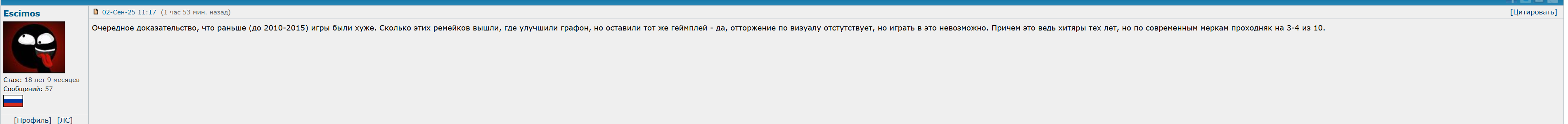 И этим людям по 30+ лет. Так что это только тут манямирок бомжей про какие-то плохие ремастеры
