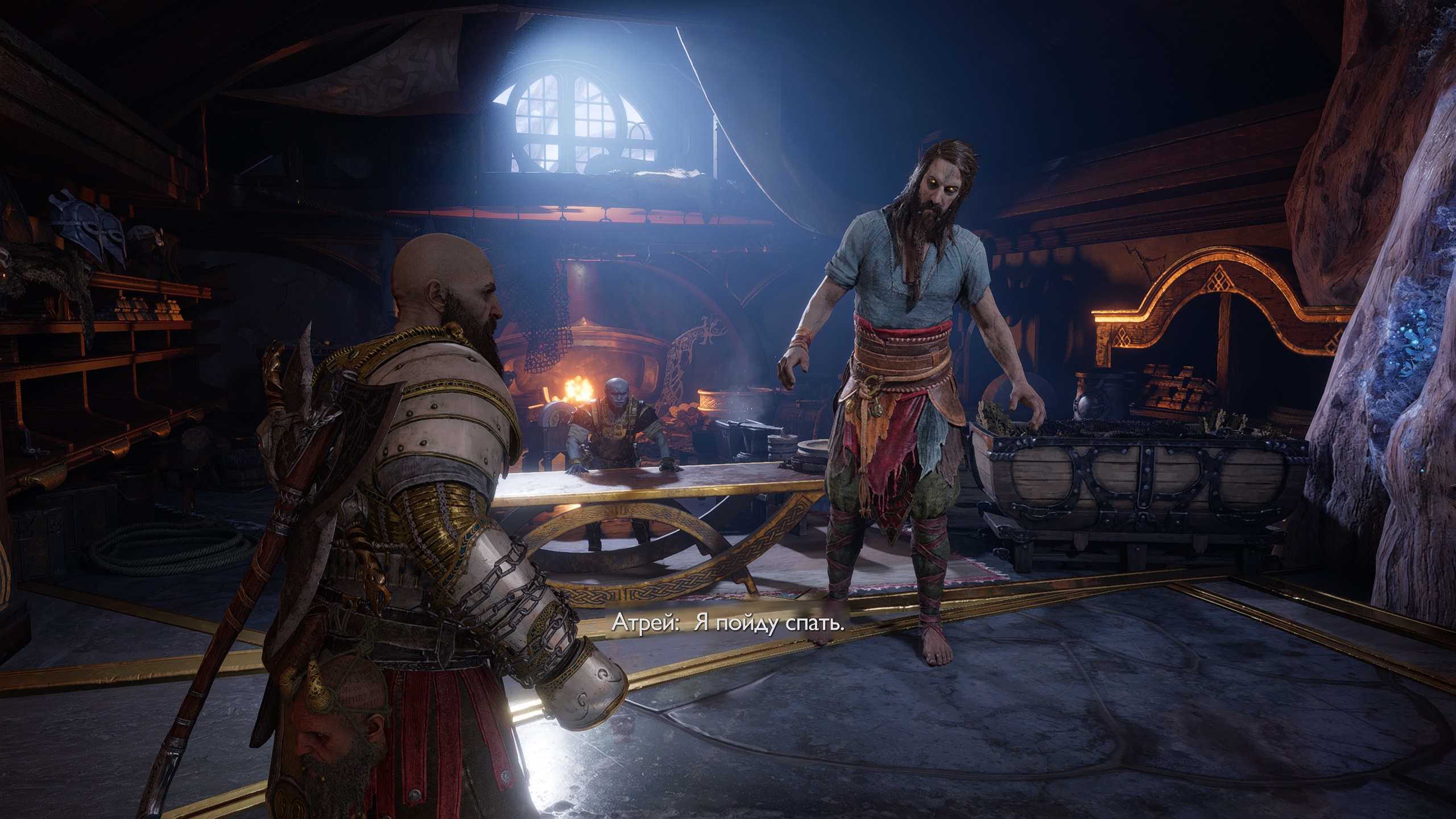 Начинаешь играть - длинная медленная катсцена. Потом заскриптованная сцена где тебе нужно жать одну кнопку (даже не QTE). Пришли к дому - опять катсцена. Далее идешь начинается махач - думаю: ну наконец-то игра началась. Драка прошла - опять катсцена. Все они меееедленные, в них нихуя не происходит. Если бы там была кнопка х2, было бы еще терпимо, но на обычной скорости я уже хотел дропнуть нахуй... Далее идешь домой - дома опять катсцена. Потом появляется какая-то телка, ходишь за ней и нажимаешь X чтобы Кратос че-то там поднял и передвинул. Потом опять 3 минуты боя и опять катсцена. Потом беготня из точки А до точки Б, где тебе нужно тупо бежать по прямой и иногда нажимать Х чтобы передвинуть бревно на пути. Геймплей - мое почтение. Дошли - опять катсцена на минут 5. После нее бой типа с боссом. Все наглухо заскриптовано, какие-то атаки не доджатся, чтобы в них тебе показали как Кратос с боссом зло смотрят друг на друга. Потом ты дохнешь от удара, который сносит тебе 75% хп до 0, хотя секунду назад удары отнимали немного здоровья. Оказывается это заскриптованная смерть, и босс такой - "че-то ты как лох в пол силы дрался, покажи мне настоящего Кратоса!" Начинается новая фаза - после нее новая катсцена, босс куда-то улетает хз как, но он типо не убит еще. Все проходит. Начинается новая катсцена с сыном...